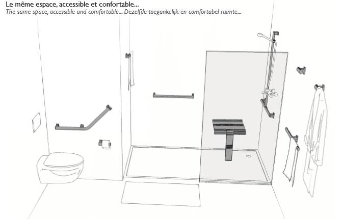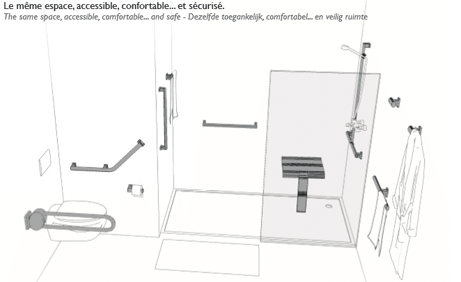 La barre de maintien est un aménagements primordial est premier de la douche ergonomique. Elle permet a l’usager de se maintenir dans sa salle de bains , de ce fait il réduit les chutes dans cette dernière.